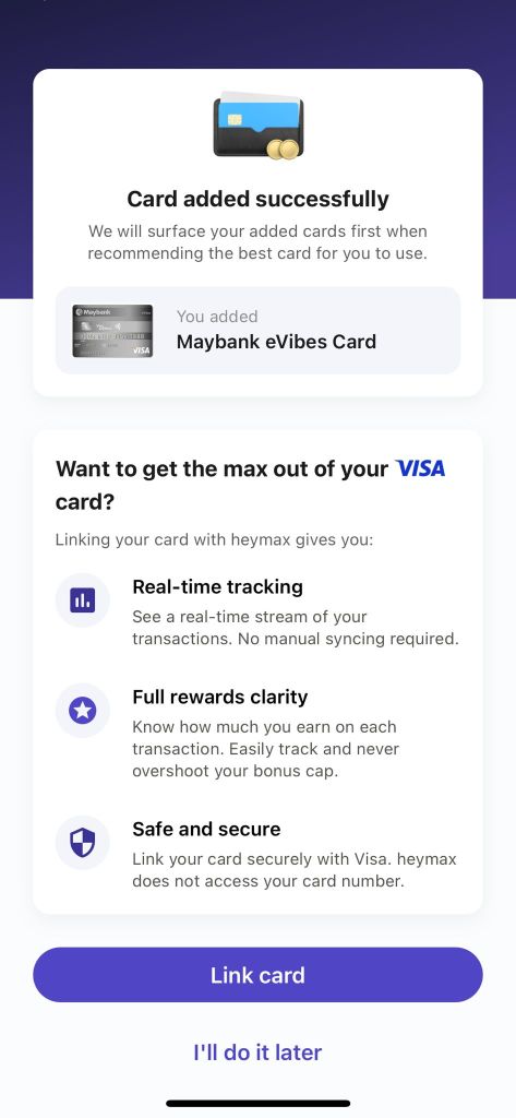 Note: Heymax seems to only support linking of Visa cards only for now.